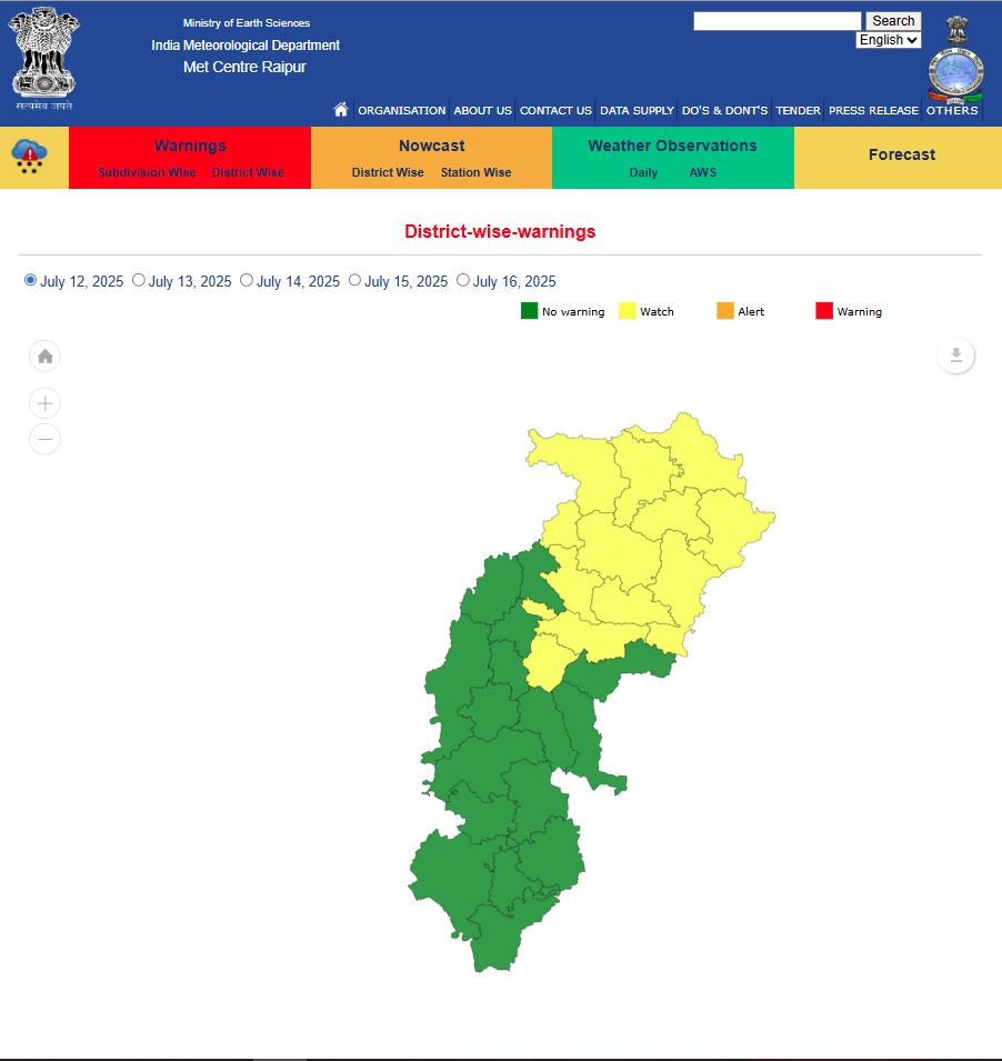 - छत्तीसगढ़ के कई जिलों में ऑरेंज और येलो अलर्ट,
