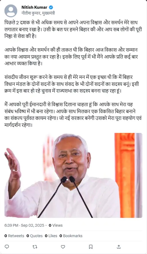 नामांकन से पहले नीतीश ने किया ये पोस्ट