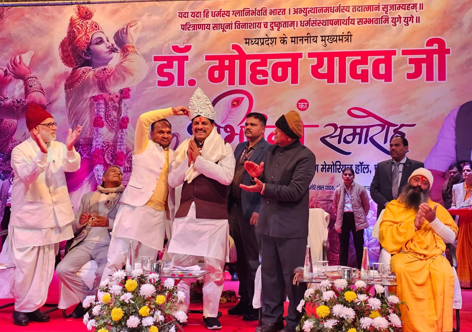 मध्यप्रदेश के मुख्यमंत्री डॉ. मोहन यादव ने कहा कि हम अगर जय गोपाल कृष्ण बोलते तो ऐसे ही नहीं बोलते। इसके पीछे प्रकृति प्रेम भी दिखता है। हम आज भी गाय पालते हैं। गाय की हमलोग पूजा करते हैं। हम लोग गाय को माता मानते हैं। भगवान कृष्ण का जन्म जेल में हुआ। हर चुनौतियों का सामना करते हुए वह किसी से डरे नहीं और लोगों को धर्म की राह दिखाई। यह समय लोकतंत्र का है। कितनी अच्छी बात है कि मुझे द्वारिकाधीश के अन्यय भक्त हमारे प्रधानमंत्री नरेंद्र मोदी ने चुना। चाय बेचकर जिसका परिवार चलता हो, संघर्षों में जिन्होंने जीवन जिया ऐसे नरेंद्र मोदी जी आज हमारे देश के प्रधानमंत्री हैं।