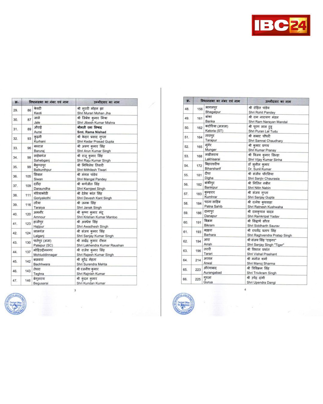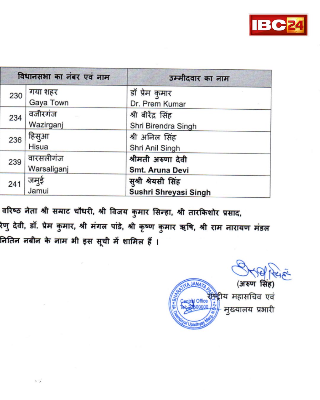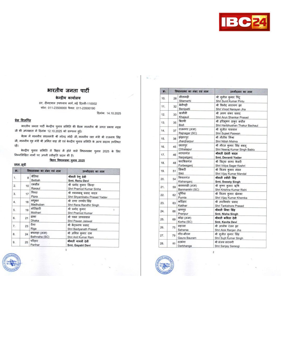 - बिहार चुनाव: बीजेपी की पहली लिस्ट जारी