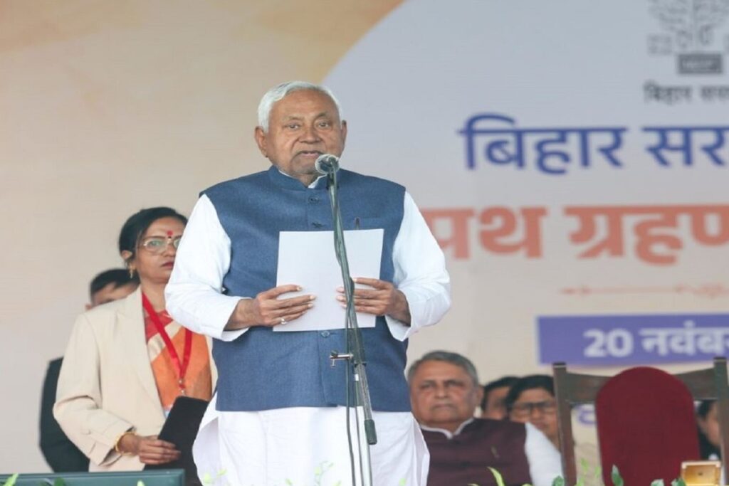 पटना: Nitish Kumar Oath Ceremony: बिहार में नई एनडीए सरकार का गठन हो चुका है। पटना के ऐतिहासिक गांधी मैदान में आयोजित भव्य शपथ ग्रहण समारोह में जनता दल (यूनाइटेड) के वरिष्ठ नेता नीतीश कुमार ने रिकॉर्ड 10वीं बार मुख्यमंत्री पद की शपथ ली। राज्यपाल मोहम्मद आरिफ खान ने उन्हें पद और गोपनीयता की शपथ दिलाई।