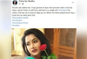 Trishakar madhu leadked MMS : उन्होंने इसके लिए पहले जहां इंस्टाग्राम लाइव का सहारा लिया वहीं फैसबुक पर भी एक पोस्ट शेयर कर अपनी नाराजगी जाहिर की।