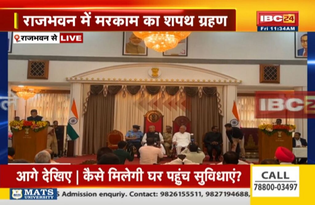 Mohan Markam is taking oath as minister आपको बता दें कि इससे पहले बस्तर सांसद दीपक बैज को पीसीसी चीफ का प्रभार दिया गया। जिसके बाद मंत्री प्रेमसाय सिंह टेकाम ने भी इस्तीफा दे दिया।
