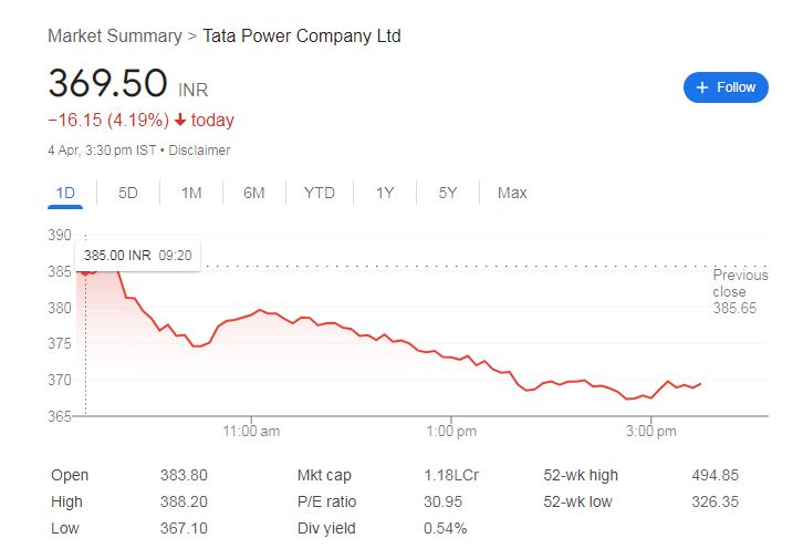 टाटा पावर स्टॉक डाटा – 4 अप्रैल 2025