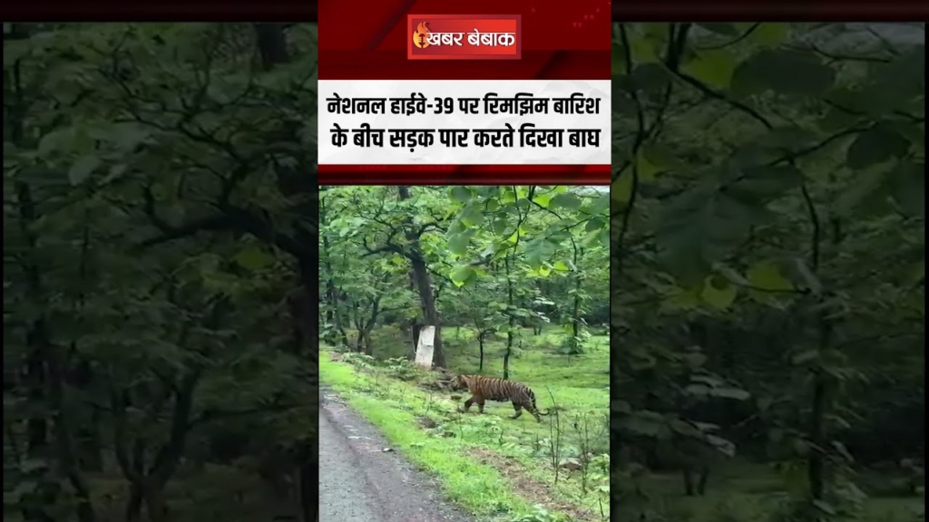 National Highway 39 पर रिमझिम बारिश के बीच सड़क पार करते दिखा Tiger