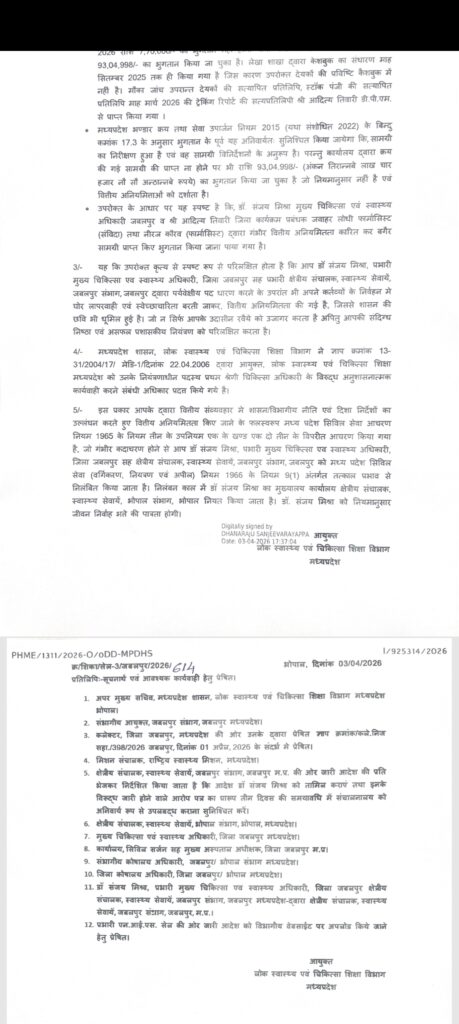 - जबलपुर CMHO संजय मिश्रा सस्पेंड