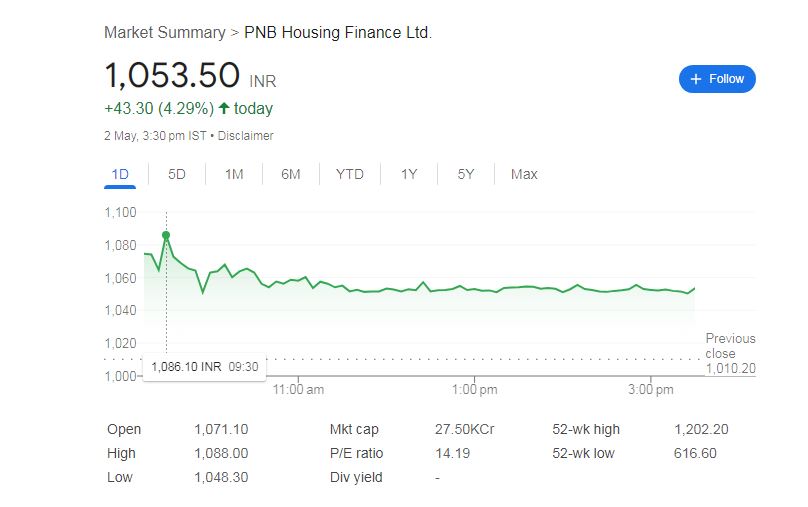 PNB Housing Finance Share Price: ब्लॉक डील के बाद PNB Housing के शेयरों में उछाल, बड़ी डील से 4.29% चढ़े स्टॉक्स