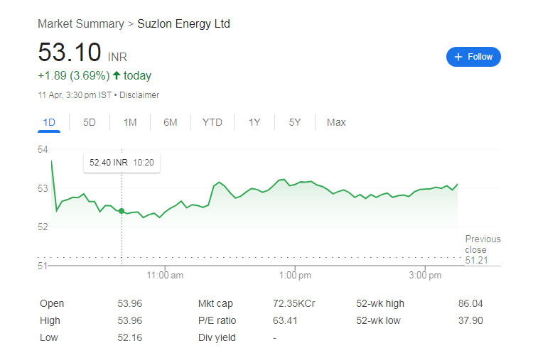 Suzlon Energy Share Price: छोटे निवेशकों की नजर में छाया 50 रुपये वाला ग्रीन शेयर, स्टॉक में 3% से ज्यादा की तेजी – NSE:SUZLON, BSE:532667