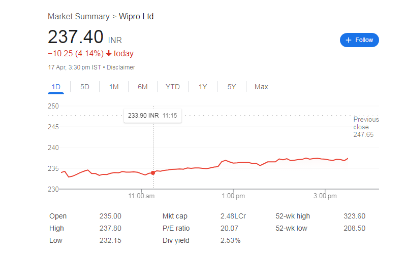 (Wipro Share price, Image Source: IBC24)