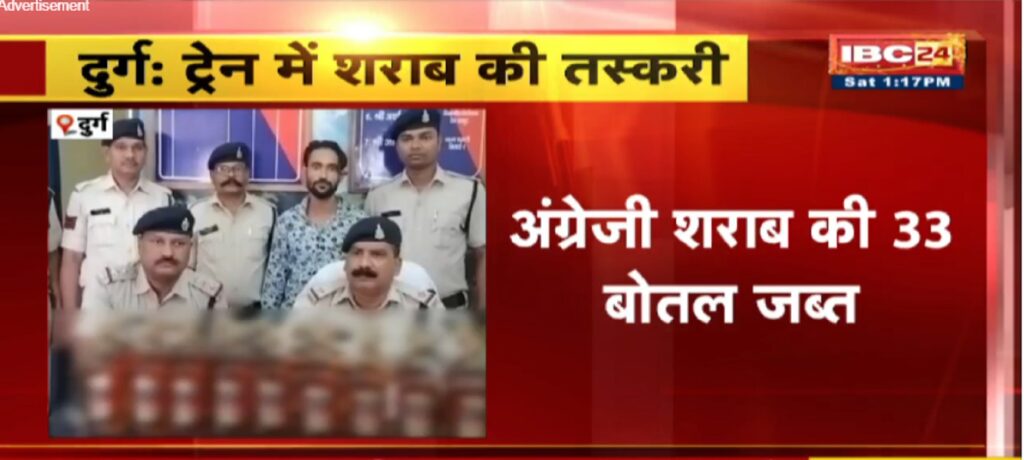 दुर्ग। रेलवे पुलिस अवैध रूप से शराब की तस्करी करने वाले रैकेट का खुलासा किया है। पुलिस ने आरोपी से 33 बोतल अंग्रेजी शराब जब्त की है। बताया जा रहा है कि आरोपी अंबिकापुर से शराब लाकर अवैध रुप से दुर्ग में खपाता था।