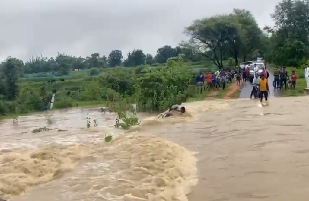 Bike rider crossing the overflowing drain: अम्बिकापुर। छत्तीसगढ़ में बीते कई दिनों से अलग अलग जिलों में बारिश हो रही है, बीते दो सप्ताह से पानी के लिए तरस रहे सरगुजा संभाग पर भी बादल मेहरबान हुए हैं और बीते दो दिनों से यहां पर बारिश हो रही है जिसके कारण तमाम नदी नाले उफान पर आ गए हैं। इसी बीच उफनते नाले में एक बाइक सवार बह गया। युवक उफ़नते नाले में बाइक पार कर रहा था। यह घटना दरिमा थाना क्षेत्र के छिंदकालो की बताई जा रही है। हालाकि नाले में बह रहे युवक को आसपास के लोगों ने बचा लिया और उसके लिए मसीहा बन गए। इस घटना का एक वीडियो भी सामने आया है।