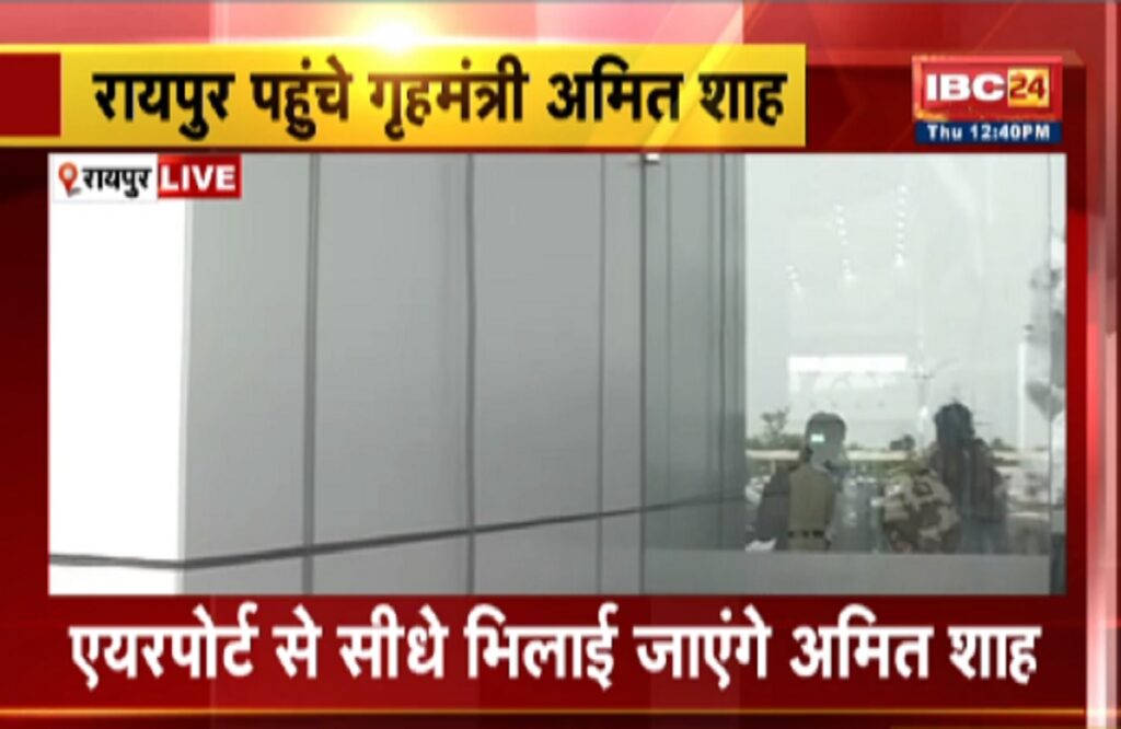 Amit Shah in Bhilai जिसके बाद अब वे यहीं एयरपोर्ट पर ही छत्तीसगढ़ी व्यंजन लंच करेंगे। जिसके बाद केंद्रीय गृहमंत्री अमित शाह हेलीकाप्टर से भिलाई के लिए रवाना होंगे। वहां शाह