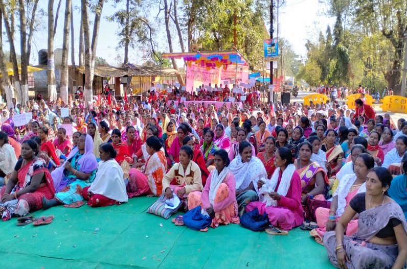 Anganwadi workers and assistants protest