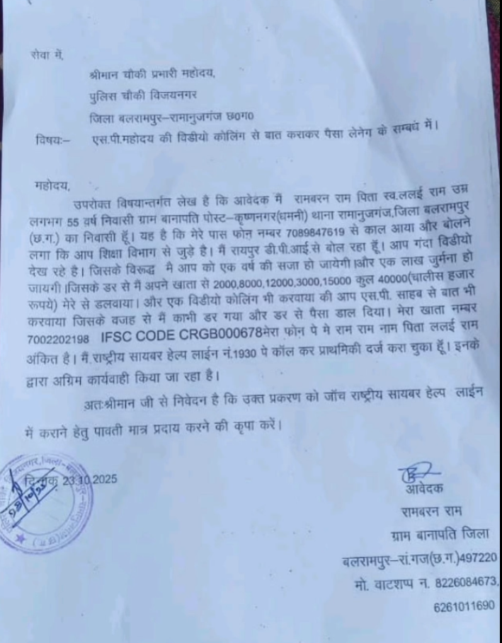 बलरामपुर: CG Cyber Crime: जिले में शिक्षकों का निजी डाटा लीक होने से साइबर ठगों का निशाना बन रहे हैं। दो से अधिक शिक्षक साइबर ठगी के शिकार हो चुके हैं और उन्होंने थाने में शिकायत दर्ज कराई है। जिला शिक्षा अधिकारी मनीराम यादव भी साइबर अपराधियों के निशाने पर हैं।
