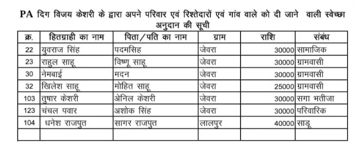 - स्वेक्षा अनुदान राशि के बंदरबांट की लिस्ट वायरल