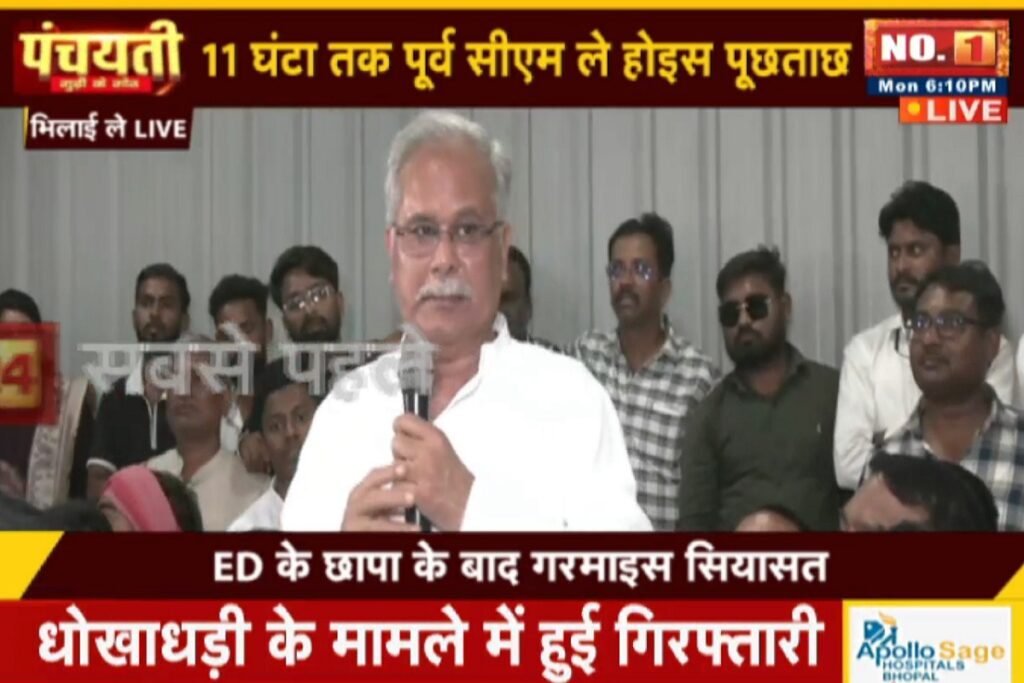 भिलाईः ED Raid at Bhupesh Baghel’s House छत्तीसगढ़ के पूर्व मुख्यमंत्री और AICC महासचिव भूपेश बघेल और बेटे चैतन्य के घर पर प्रवर्तन निदेशालय यानी ईडी की टीम ने दबिश दी। ईडी के अधिकारी सुबह से दस्तावेज खंगाल रहे थे। कार्रवाई के बीच नोट गिनने और सोना जांचने की मशीनें भी मंगाई गई है। 11 घंटे की पूछताछ के बाद भूपेश बघेल अपने घर के बाहर आए। उन्होंने कार्यकर्ताओं से बातचीत की। भूपेश ने कहा कि भारतीय जनता पार्टी बौखला गई है और बौखलाहट में ED भेजी है। जबरन कार्रवाई की जा रही है। ये सब एक षड्यंत्र का नतीजा है, जिसमें कांग्रेस के नेताओं को परेशान किया जा रहा है। प्रताड़ित किया जा रहा है। बिना सर्च वारंट के आए थे। 7 साल पुराने मामले में क्लीन चिट मिली। इसलिए अब ये षडयंत्र किया जा रहा है।