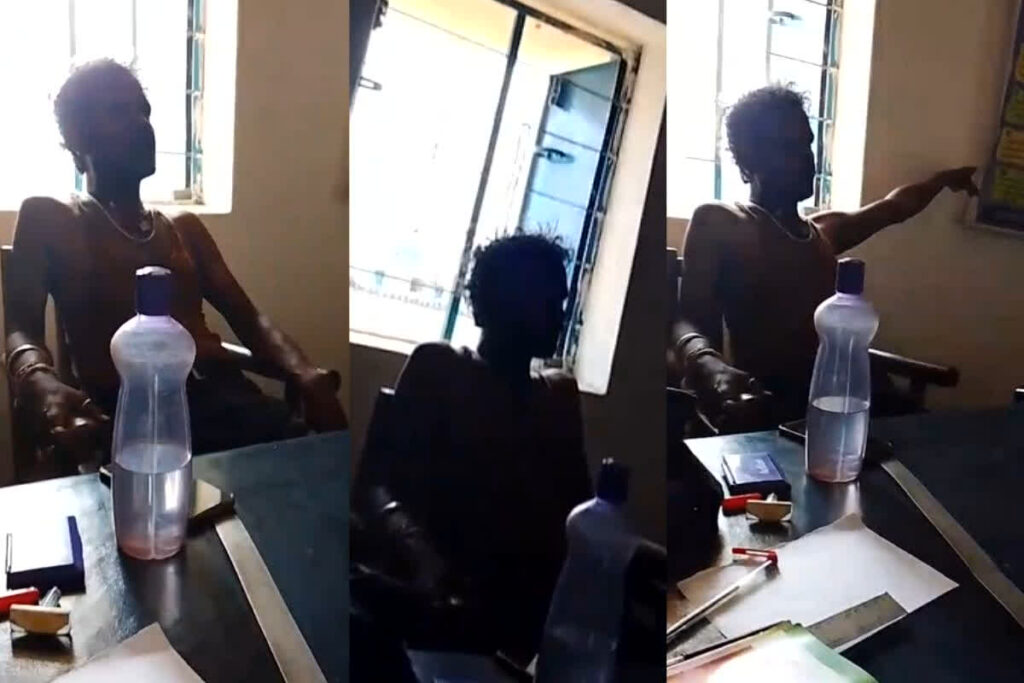 बिलासपुर: Bilaspur News: ज़िले के मस्तूरी क्षेत्र के सोन गांव स्थित प्राइमरी स्कूल में पदस्थ शिक्षक विश्वकर्मा प्रसाद कश्यप की बड़ी लापरवाही और शर्मनाक हरकत सामने आई है। शिक्षक पर आरोप है कि वह शराब के नशे में धुत्त होकर स्कूल पहुंचा और वहां कपड़े उतारकर हंगामा करने लगा। Bilaspur drunk teacher video
