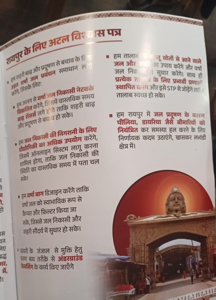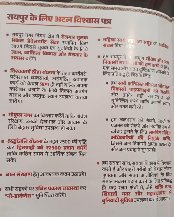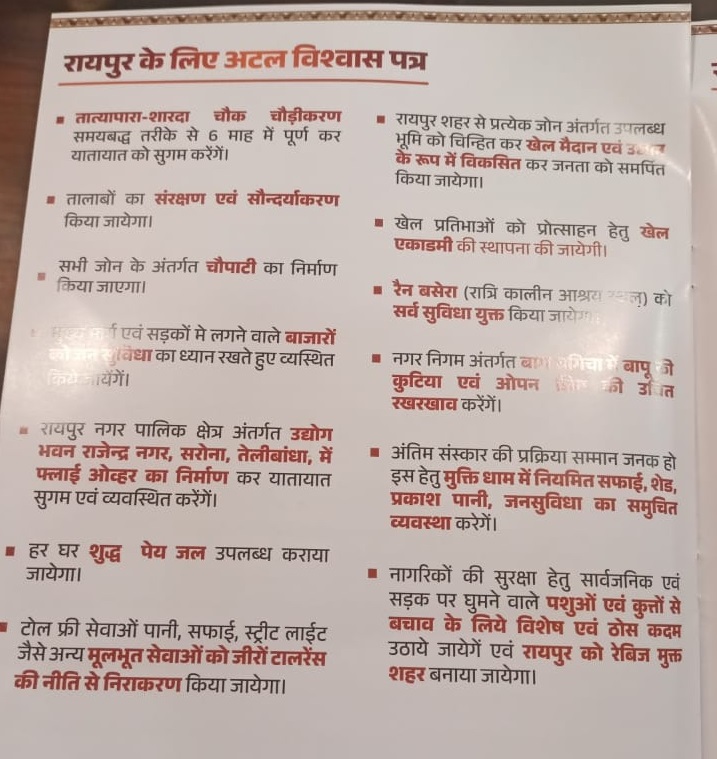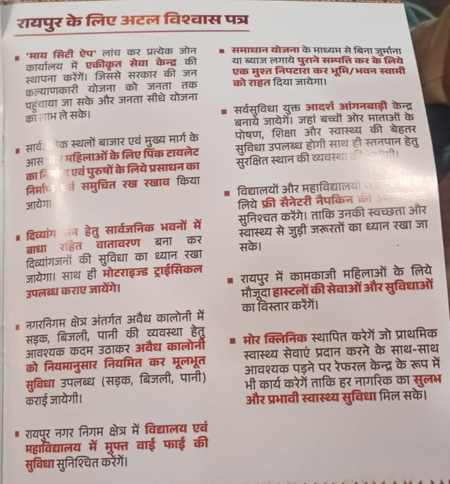 रायपुर नगर निगम के लिए भाजपा ने जारी किया अलग से घोषणा पत्र, BJP released a separate manifesto for Raipur Municipal Corporation