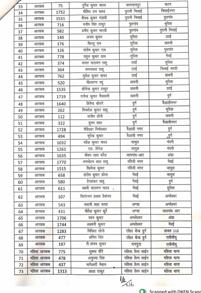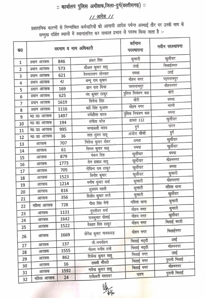 पुलिस विभाग में बंपर तबादले, इस जिले के कई पुलिसकर्मी इधर से उधर, Bumper transfers in police department, many policemen transferred in Durg district