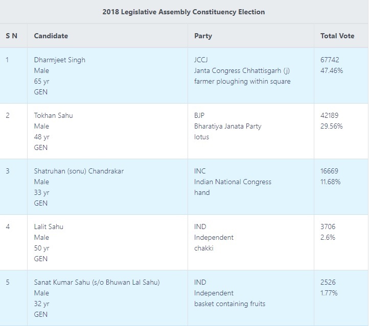 बता दे कि धर्मजीत सिंह ठाकुर के लिए लोरमी पुरानी और परंपरागत सीट रही है। 2003 और 2008 के चुनाव में वह कांग्रेस की टिकट से विधानसभा पहुंचे थे। वही 2013 में उन्हें भाजपा के तोखन साहू के हाथो हार का सामना करना पड़ा था लेकिन 2018 में वह जेसीसी (जे) की टिकट से फिर विधायक बने।