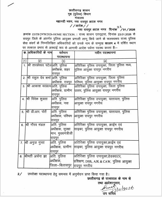 - आदेश जारी होने के बाद पुलिस महकमे में नई तैनाती लागू हो गई