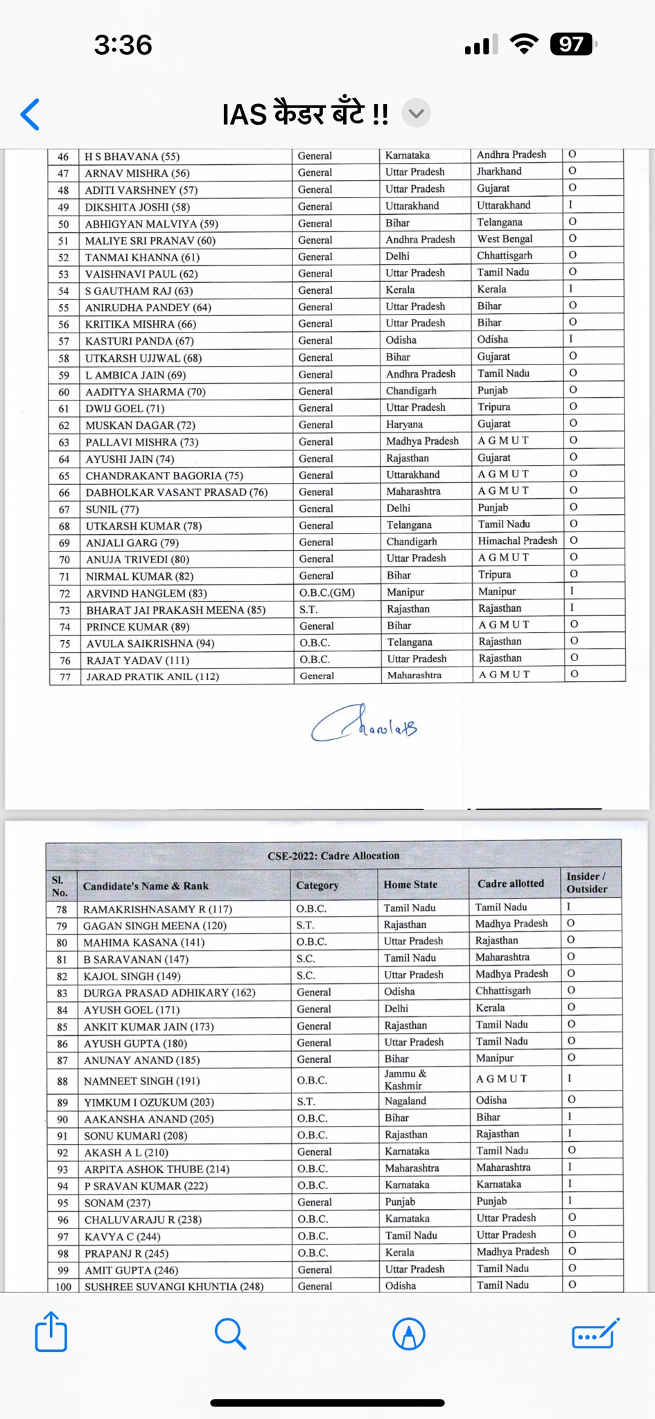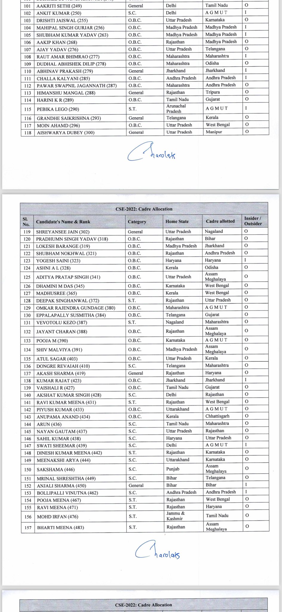 बता दें कि 2022 बैच के IAS का कैडर अलोकेशन हो रहा है। 2022 बैच से छत्तीसगढ़ को कुल 4 नये IAS अफसर मिलेंगे। जिन अफसरों को छत्तीसगढ़ कैडर मिला है, उसमें 61वीं रैंक तन्मय खन्ना है। तन्मय दिल्ली के रहने वाले हैं। वहीं 162वीं रैंक ओड़िशा के दुर्गा प्रसाद अधिकारी को भी छत्तीसगढ़ कैडर मिला है, जबकि 434वीं रैंक अनुपमा आनंद और तेलंगाना के 554वीं रैंक एम भार्गव को भी छत्तीसगढ़ कैडर मिला है।