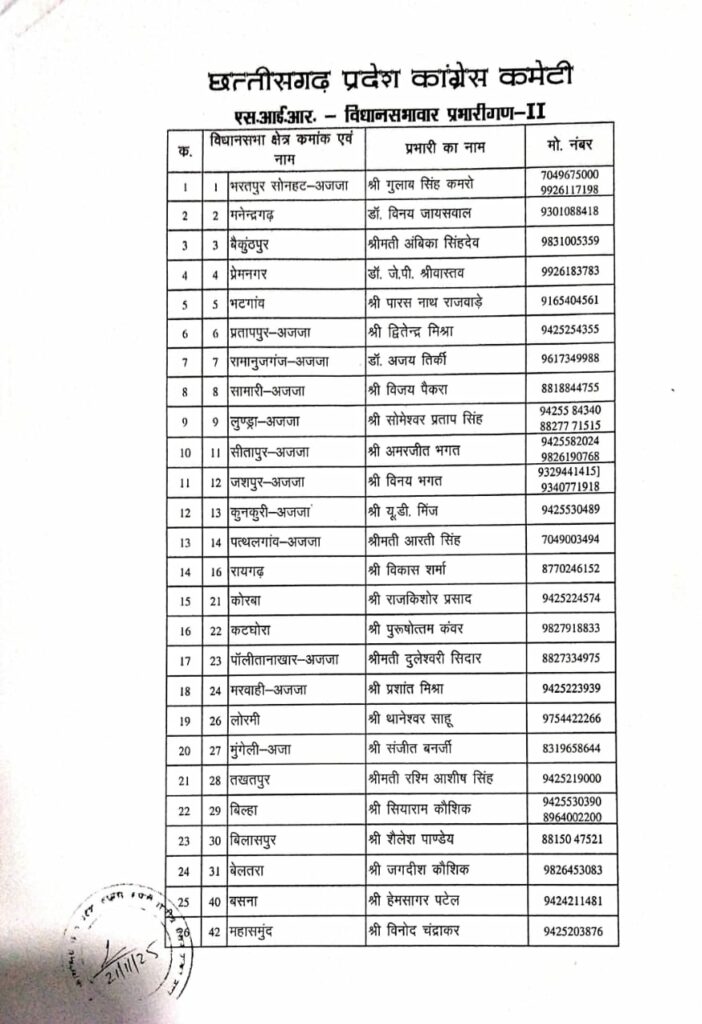 - कांग्रेस ने 49 विधानसभा के प्रभारी की सूची जारी की