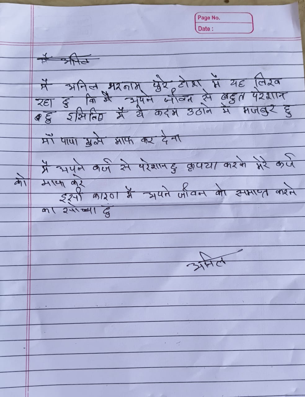 - सुसाइड नोट में लिखा- मां-पापा मुझे माफ करना,