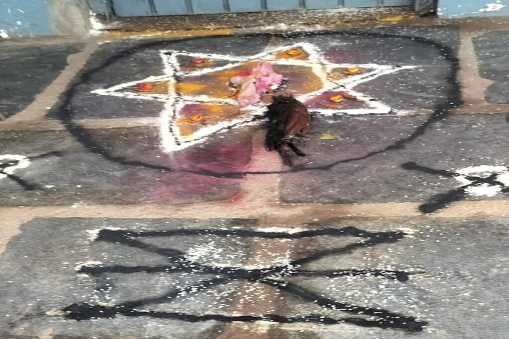 दुर्ग: Durg News,आधुनिक युग में आज भी अंधविश्वास हावी है। जहां लोग आज भी जादू टोना पर विश्वास करते है, लेकिन जादू टोना किसी घर पर नहीं बल्कि शिक्षा के मंदिर में किया गया है । दुर्ग के बोरसी स्थित पीएमश्री स्कूल परिसर के भीतर प्राचार्य रूम के ठीक सामने बरामदे में अज्ञात व्यक्ति के द्वारा काला जादू के जैसा आकृति और पूजा संस्कार किया है। इसमें रंगोली से कलाकृति बनाई गई, उसके भीतर तंत्र मंत्र के लिए विभिन्न वस्तुओं को रखा गया। जिसमें कटा हुआ नींबू और एक मृत पक्षी जिसे कोयल बताया जा रहा है।