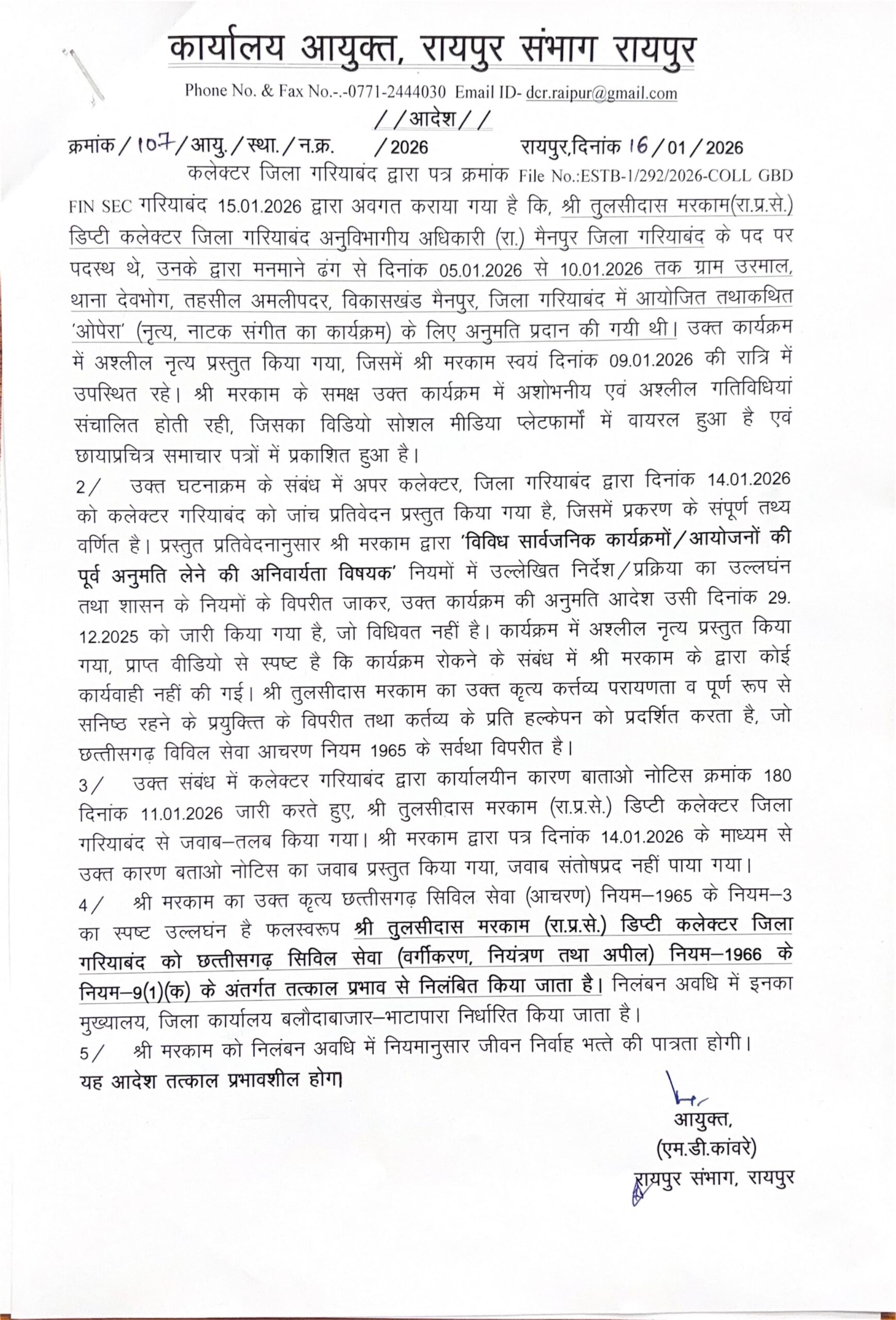अश्लील डांस केस में SDM पर कार्रवाई (Gariaband obscene dance)