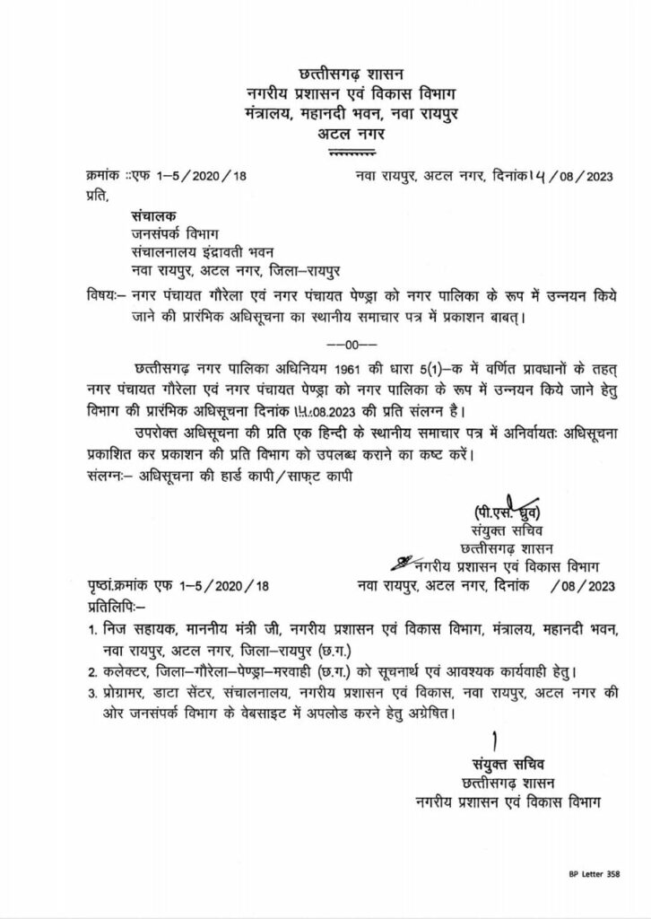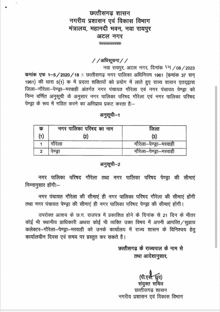 गौरेला और पेंड्रा नगर पंचायत अब नगरपालिका.. आदेश जारी.. CM ने किया था एलान