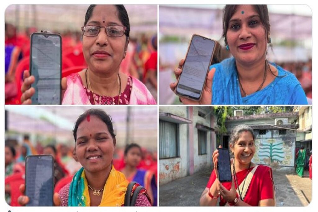 जगदलपुर की रेणुका दीदी,थामेश्वरी दीदी और सलोनी दीदी और जांजगीर चांपा की खिलेश्वरी दीदी के मोबाइल में आ गया ,खुशियों का नोटिफिकेशन।