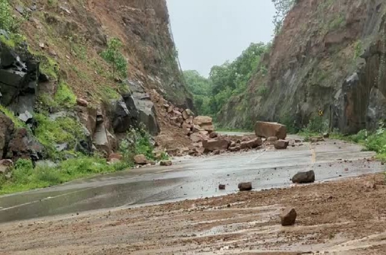 बालेद। National Highway Blocked: बालोद जिले अंतर्गत पुरूर -जगदलपुर मुख्य मार्ग नेशनल हाईवे-30 पर स्तिथ मरकाटोला घाट में पहाड़ से चट्टान गिरने के कारण मुख्य मार्ग बाधित हो गया हैं। बताया जा रहा है कि भारी बारिश के कारण भूस्खलन होने से पहाड़ी से चट्टान रास्ते पर गिरी गई, हालांकि इस घटना में किसी प्रकार की जनहानि नहीं हुई है।