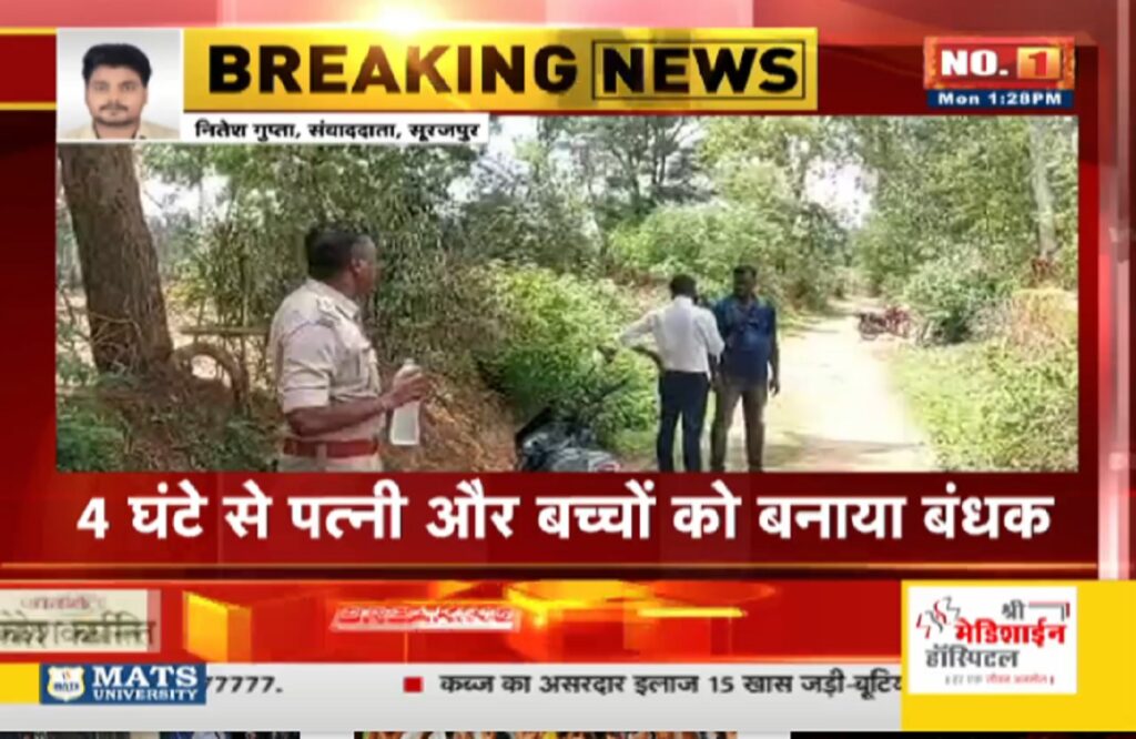 सूरजपुर। Husband kept wife and child hostage जिले से एक हैरान करने वाला मामला सामने आया है। यहां एक युवक ने अपनी ही पत्नी और बच्चों को बंधक बनाकर रख लिया है। पिछले 4 घंटे से आरोपी ने पत्नी और बच्चों को बंधक बनाए रखा है।