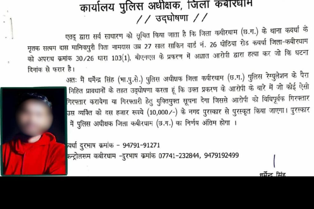 Kawardha Dance Teacher Murder Case: कवर्धा में डांस टीचर सत्यम दास मानिकपुरी हत्या मामले में नाबालिग हिरासत में, पुलिस जांच में चौंकाने वाला खुलासा।