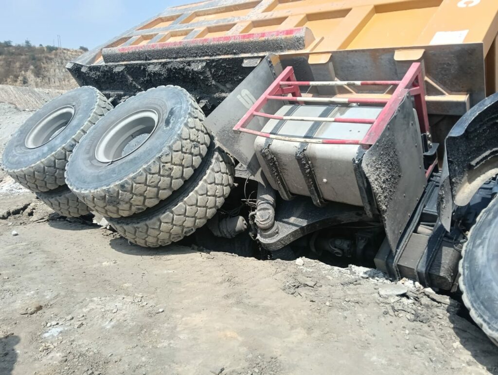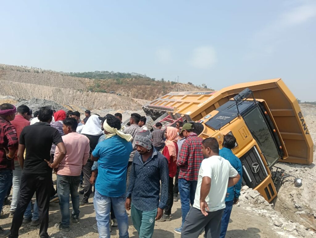 खदान में बड़ा हादसा, गड्ढे में गिरा भारी-भरकम डंपर