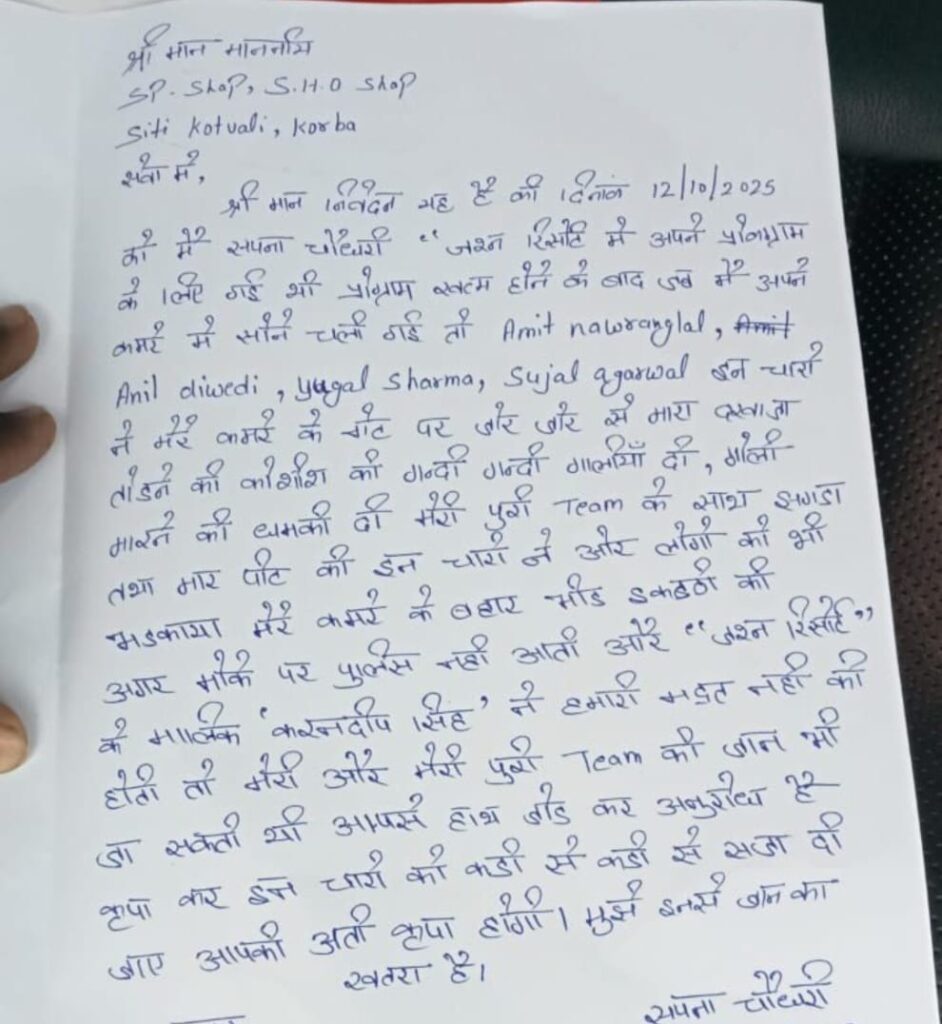 Sapna Chaudhary korba News इधर, दूसरे पक्ष के अनिल द्विवेदी ने भी रिपोर्ट दर्ज कराई है। उनका कहना है कि जब वे सपना चौधरी को सफल कार्यक्रम की बधाई देने पहुंचे, तो रिजॉर्ट कर्मियों ने उन्हें रोका और मारपीट कर उनके गले से पांच तोला सोने की चैन लूट ली।