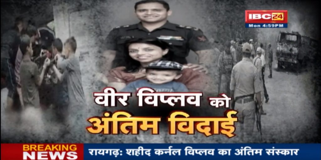 रायगढ़ः मणिपुर उग्रवादी हमले में शहीद हुए छत्तीसगढ़ के माटीपुत्र कर्नल विप्लव त्रिपाठी को आज अंतिम विदाई दी गई। उनके साथ उनकी पत्नी और बच्चे को अंतिम विदाई दी गई।