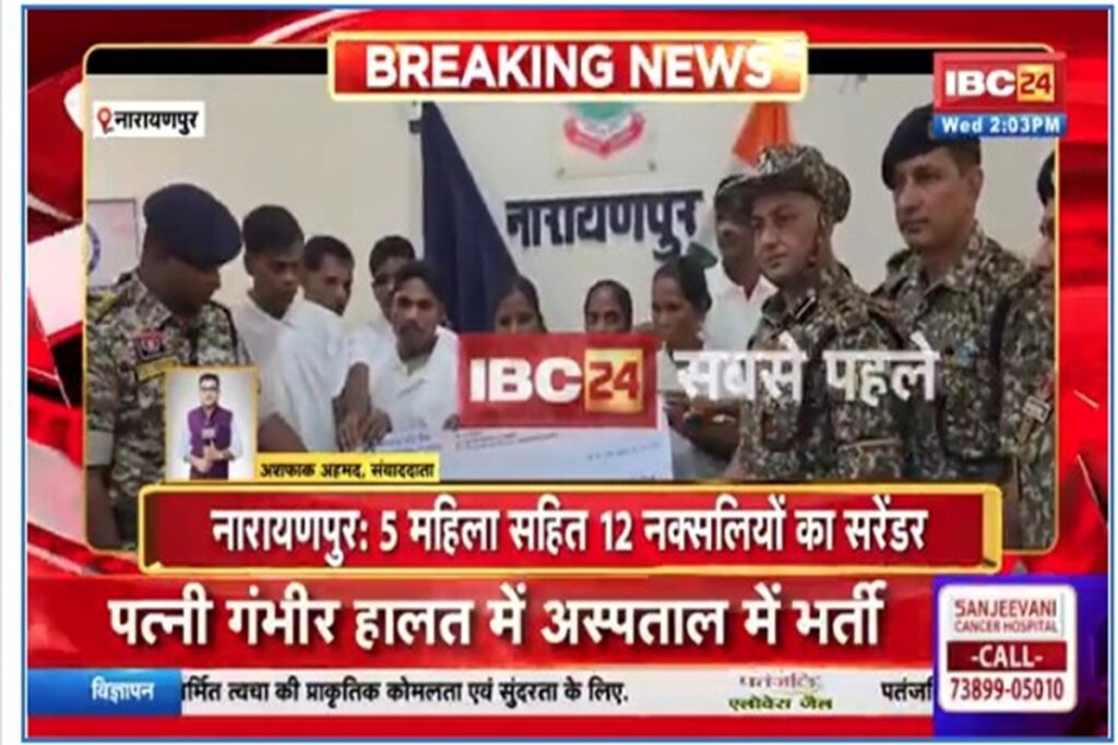 Narayanpur News: छत्तीसगढ़ में नक्सलियों के खिलाफ चल रहे अभियान में नारायणपुर पुलिस को बड़ी सफलता मिली है। दरअसल, नारायणपुर पुलिस के सामने 5 महिला सहित 12 नक्सलियों ने सरेंडर कर दिया है। बता दें कि, इन सभी नक्सलियों पर 18 लाख लाख इनाम घोषित था।