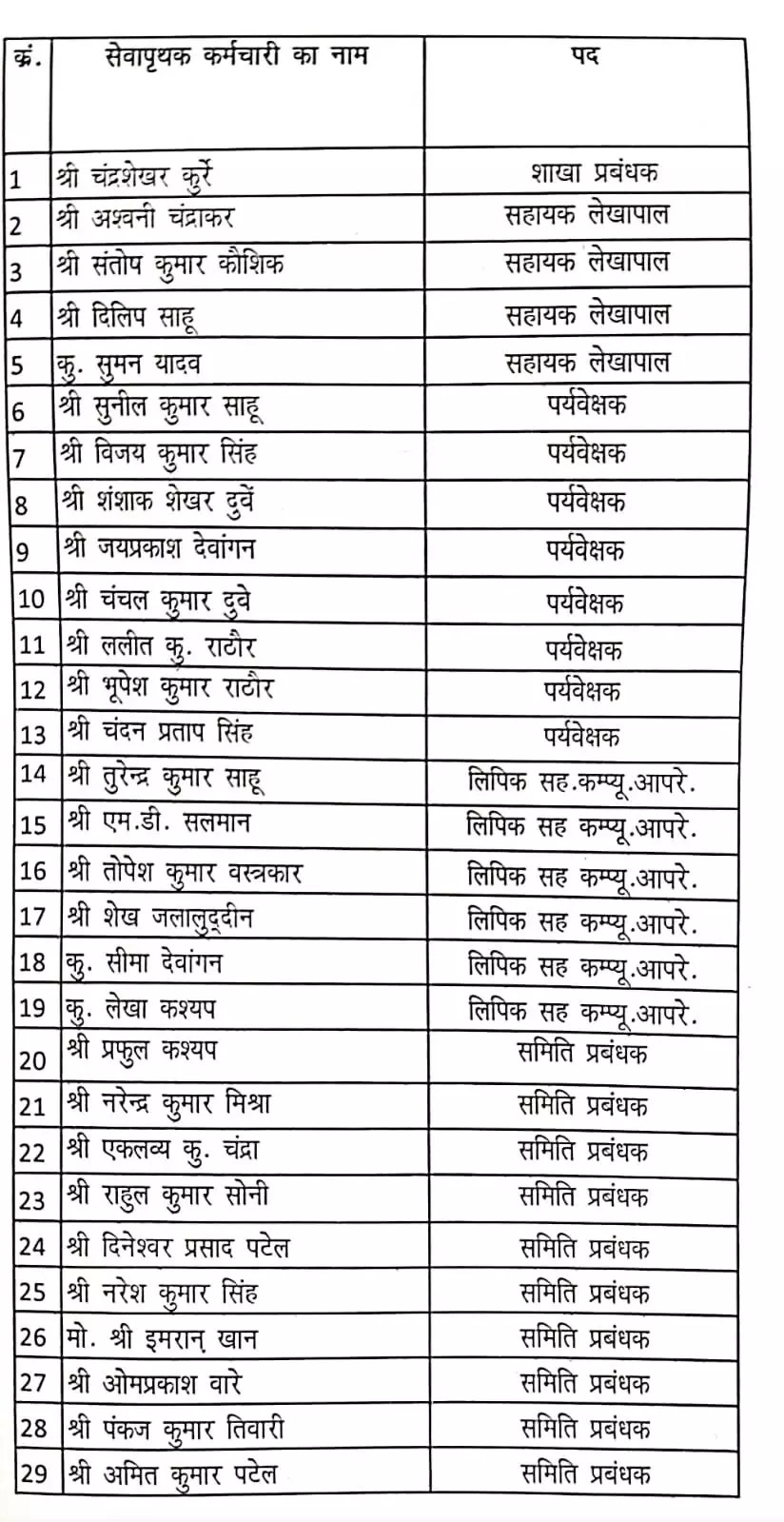 छत्तीसगढ़ के इन 29 कर्मचारियों को नौकरी से निकालने के आदेश, Orders to sack these 29 employees of Chhattisgarh