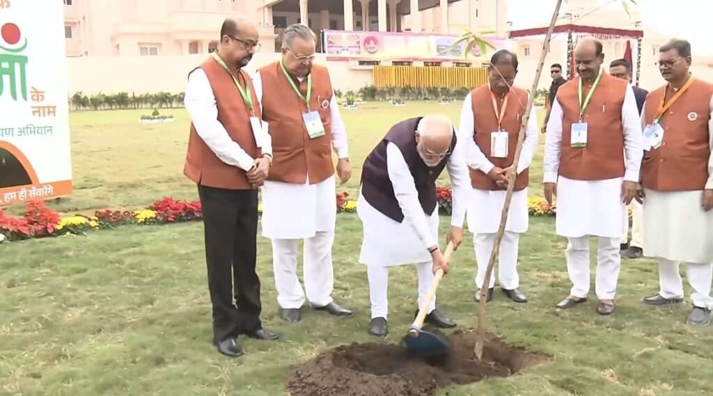 प्रधानमंत्री नरेंद्र मोदी ने लगाया रुद्राक्ष का पौधा