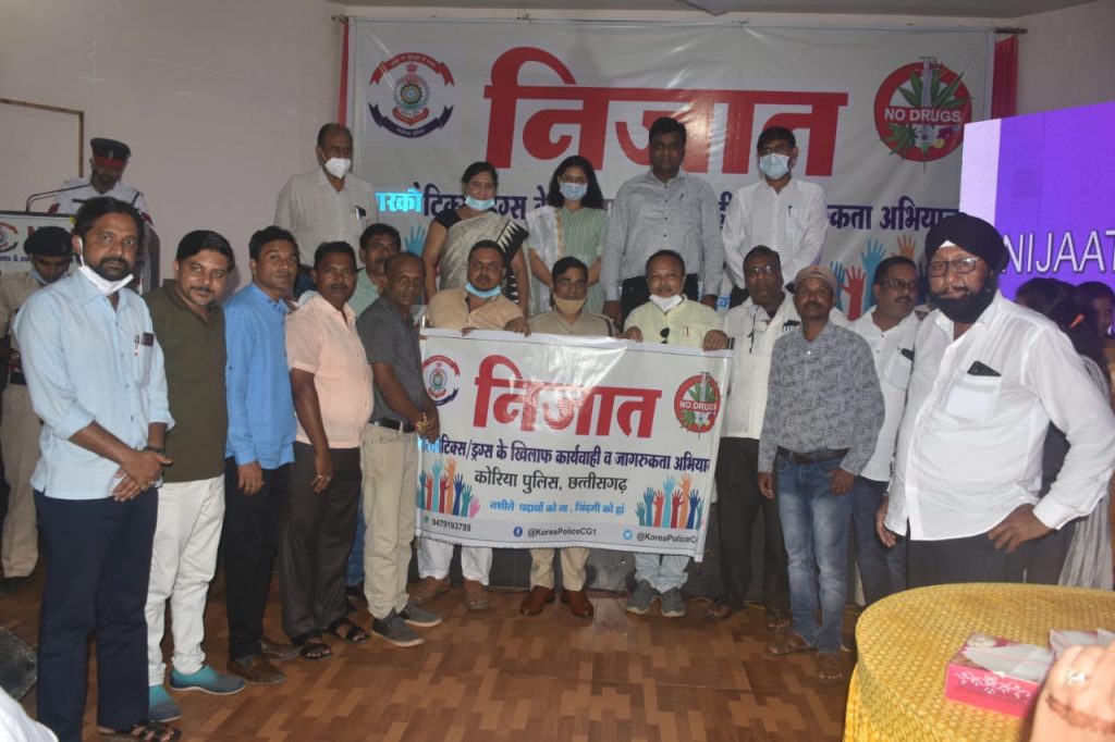 मनेन्द्रगढ़। कोरिया पुलिस द्वारा शुरू किए गए ‘निजात अभियान’ कार्यक्रम में थाना मनेंद्रगढ़ क्षेत्र में पुलिस अधीक्षक कोरिया संतोष कुमार सिंह की अध्यक्षता में कार्यक्रम का आयोजन किया गया। जहां पुलिस अधीक्षक द्वारा सभी सामाजिक संगठनों की भागीदारी, ड्रग्स, नारकोटिक्स तथा अन्य नशे से संबंधित पदार्थों से निजात पाने एवं उससे होने वाले विनाश के बारे में विस्तार पूर्वक अपनी बात रखी।