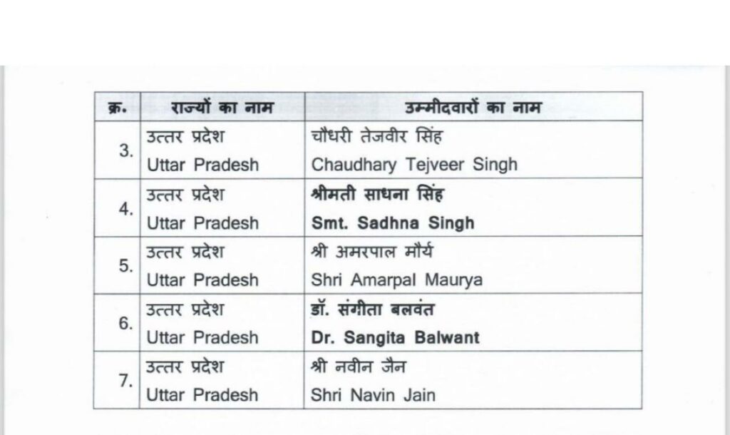 BJP announces Rajya Sabha candidates: रायपुर। भाजपा ने आगामी राज्यसभा चुनावों के लिए बिहार, छत्तीसगढ़, हरियाणा, कर्नाटक, उत्तर प्रदेश, उत्तराखंड और पश्चिम बंगाल से अपने उम्मीदवारों की घोषणा की।