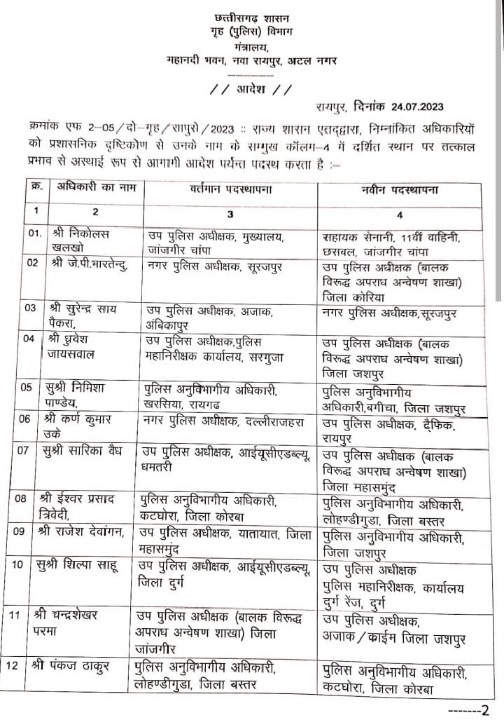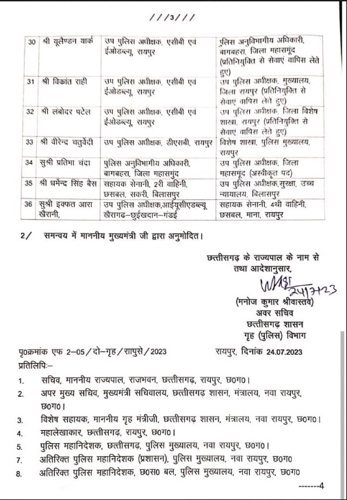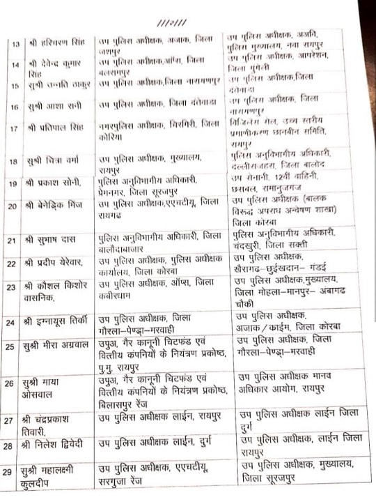 CG: प्रदेश के 36 DSP का ट्रांसफर, कटघोरा SDOP भेजे गए बस्तर, कई जिलों के CSP प्रभावित..