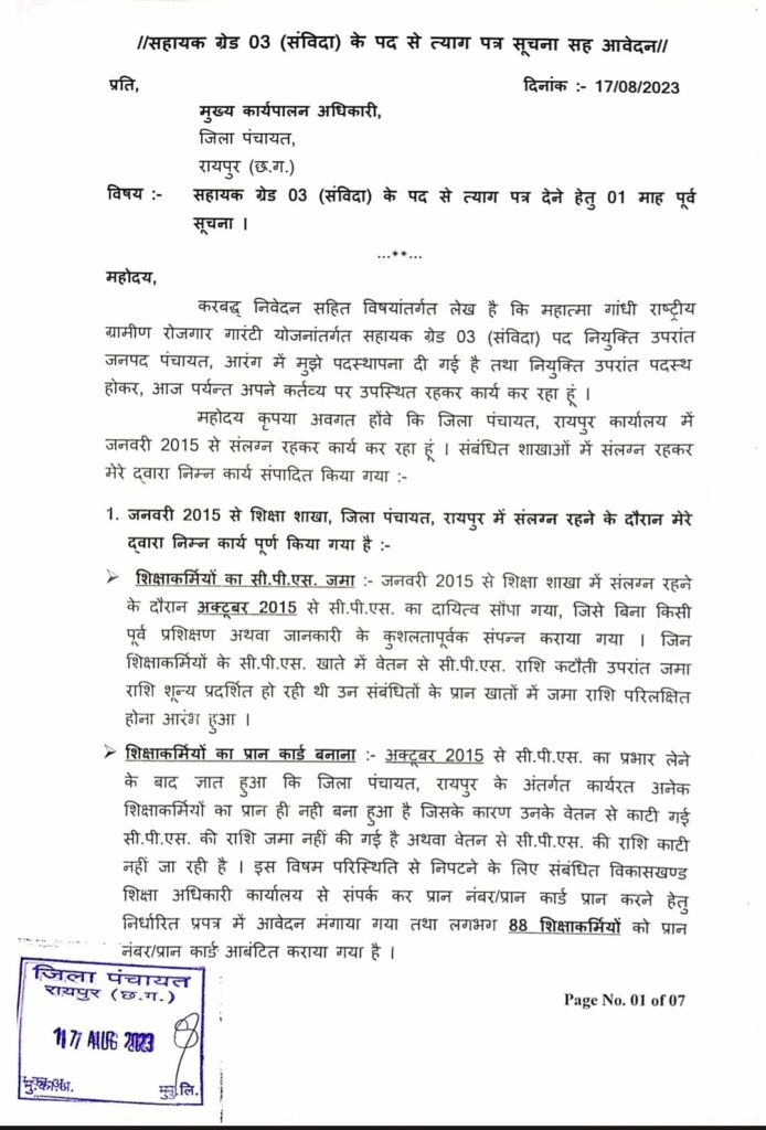 CG Samvida Karmchari Rasignation: संविदा कर्मी ने लिखा दर्द भरा इस्तीफ़ा.. बताया न घर चल रहा न परिवार, इसलिए छोड़ रहा 11 साल की नौकरी..