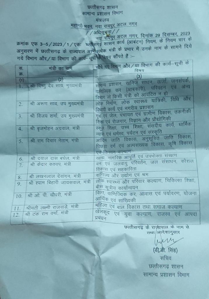 Read more: CG Ministers Department list : छत्तीसगढ़ में मंत्रियों के विभागों का हुआ बंटवारा, जानें किस मंत्री को मिला कौन सा विभाग…देखें लिस्ट
