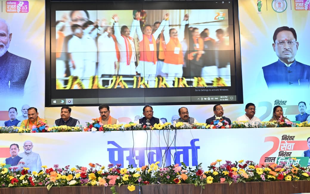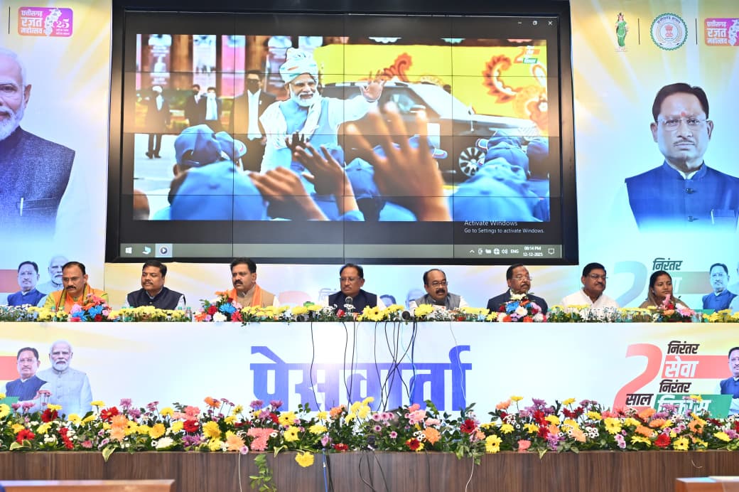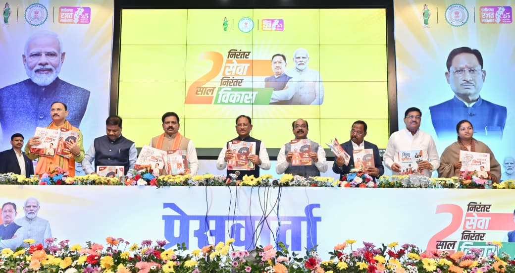 रायपुर: CM Vishnudeo Sai PC मुख्यमंत्री विष्णु देव साय ने आज वर्तमान सरकार के 2 वर्ष पूर्ण होने पर न्यू सर्किट हाउस सिविल लाइन्स में आयोजित प्रेसवार्ता में राज्य सरकार के दो वर्ष के कार्यकाल का रिपोर्ट कार्ड प्रस्तुत करते हुए कहा कि माननीय प्रधानमंत्री नरेन्द्र मोदी के नेतृत्व और उनकी गारंटियों पर विश्वास जताते हुए छत्तीसगढ़ की जनता ने जो सेवा का अवसर दिया, उसे सरकार ने पूरी निष्ठा और प्रतिबद्धता के साथ निभाया है। दो वर्षों में जनता का भरोसा और अधिक सशक्त हुआ है।