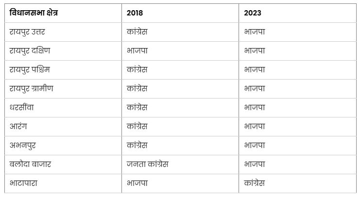 रायपुर की नौ विधानसभा सीटों में से आठ पर बीजेपी के विधायक