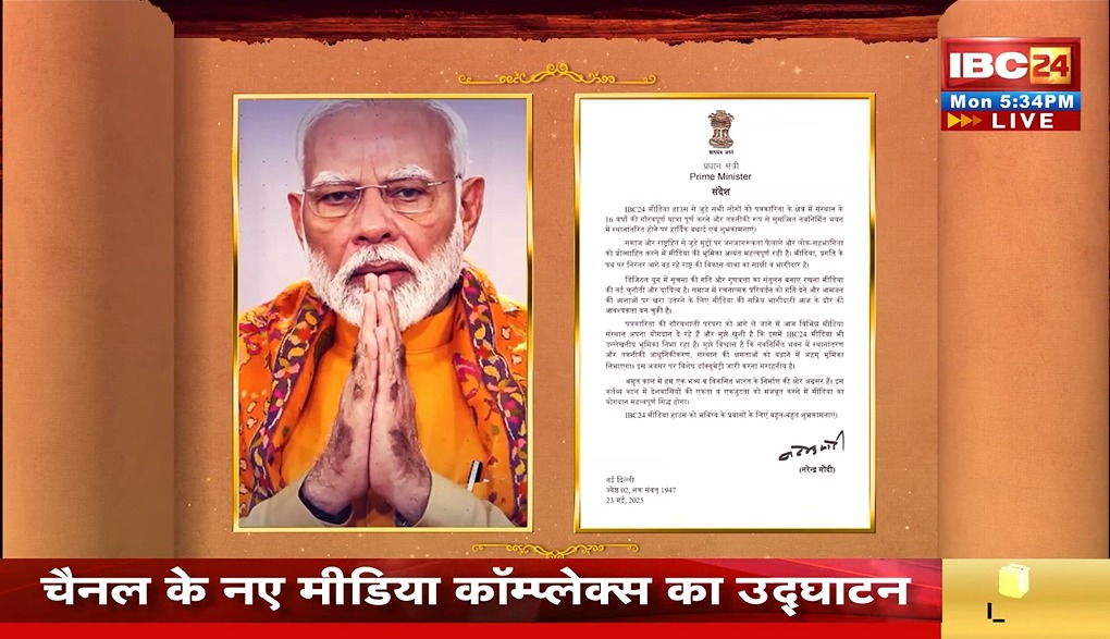 इस मौके पर प्रधानमंत्री नरेंद्र मोदी ने भी IBC24 के लिए शुभकामना सन्देश जारी किया है।