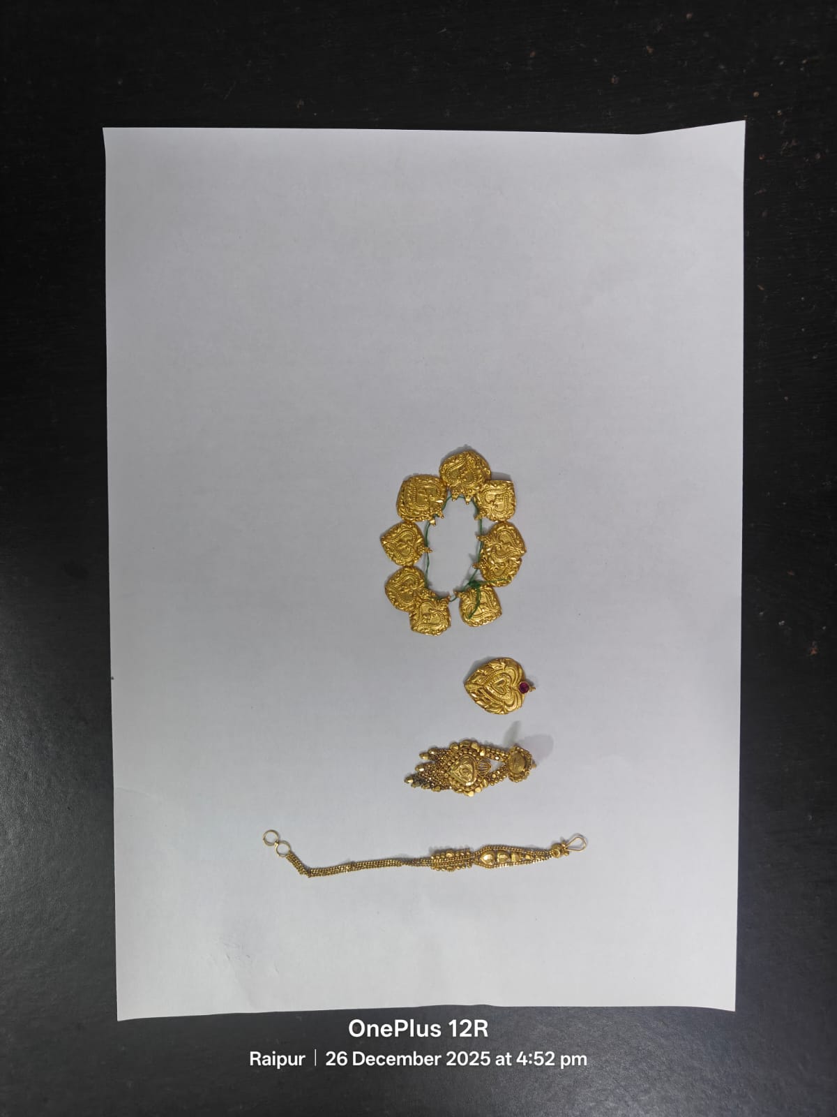 पुलिस से प्राप्त जानकारी के अनुसार थाना न्यू राजेन्द्र नगर क्षेत्र अंतर्गत परसुराम नगर पुरैना निवासी प्रार्थिया सुशीला जाल ने रिपोर्ट दर्ज कराई थी कि वह 4 अक्टूबर 2025 को अस्वस्थ होने के कारण अपने परिवार के साथ अपने गृह राज्य ओडिशा चली गई थीं। 25 अक्टूबर 2025 को जब वह वापस अपने घर लौटीं तो देखा कि घर के कमरे का ताला टूटा हुआ था। अलमारी में रखे सोने-चांदी के जेवरात और नकद रकम चोरी हो चुकी थी। इस मामले में थाना न्यू राजेन्द्र नगर में अपराध क्रमांक 278/25 धारा 331(4), 305, 3(5), 317(1) भारतीय न्याय संहिता के तहत प्रकरण दर्ज किया गया। वरिष्ठ अधिकारियों के निर्देशन में थाना प्रभारी न्यू राजेन्द्र नगर के नेतृत्व में पुलिस टीम ने त्वरित कार्रवाई करते हुए चोरी की घटना में शामिल विधि के साथ संघर्षरत एक बालक तथा आरोपी आशीष नेताम को पूर्व में गिरफ्तार किया था।